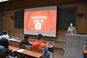 在滚动播放了kaiyun中国官方网站英文简介视频后,廖鸿婧首先代表蔡鸿常务副院长向同学们的到来表示热烈欢迎和衷心感谢,介绍了目前国家、学校以及学院对同学们学好大学英语的重视。在详细介绍了kaiyun官网现有的师资规模和教学特点之后,廖鸿靖详细解释了目前kaiyun官网施行的大学英语培养方案和课程设置,并从多个维度鼓励同学们在学好主修专业的基础上,根据自己的学习兴趣和规划积极报名修读辅修课程。