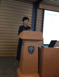 下午3:30-5:00,张静博士做了题为“古典诗词与现代人生”的报告。张静博士首先介绍了作为中华民族传统文化精华的诗词对当代社会以及对人们的修为、情感、人格方面的影响,并与在场师生分享了自己参与央视《中国诗词大会—第二季》节目的经历。张静博士认为,只要有一颗不死的诗心,诗词文化就不会枯竭。接着,张静博士为在场师生分析了杜甫的《缚鸡行》、《又呈吴郎》,并结合自己的切身体会,启发大家要在生活中树立更开阔的视野与更豁达的人生态度,随后又带领大家欣赏了黄庭坚的《王充道送水仙花五十支》,讲解了余光中的《乡愁》等多首经典诗词作品。张静博士指出,对自己抱有一种怎样的态度、有一种怎样的期许,就会有一种怎样的人生,同时更要注重人格修养与品格发展。最后,张静博士通过诗词向在座的师生表达了热切的期望,希望大家都能像雪花一样舞出自己的精彩人生,并以赠言“莫负相逢人海间”为讲座画上了完美的句号。通过张静博士的讲座,在场师生深刻感受到中国古典诗词的力量以及将中国古典诗词文化发扬光大的重大责任。