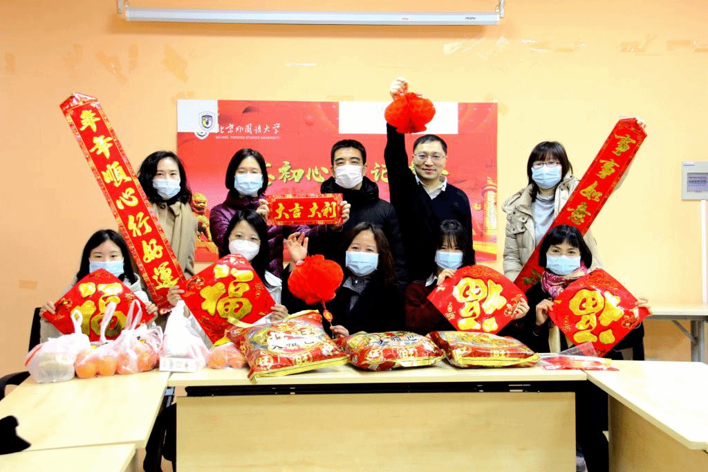 2月11日上午,按照学校工作要求,学院党总支在北外学生中心302会议室举行2021年春节留校学生新春慰问活动。党总支书记蔡鸿、副书记、院长侯俊霞、副院长仵胜奇、蒋岳春、党总支委员张东英老师以及教师党支部和学生党支部负责教师一行七人,看望了因参加冬奥会志愿服务留京的研究生王颖、陈靖以及因疫情原因未能返乡的王璐瑶等同学。